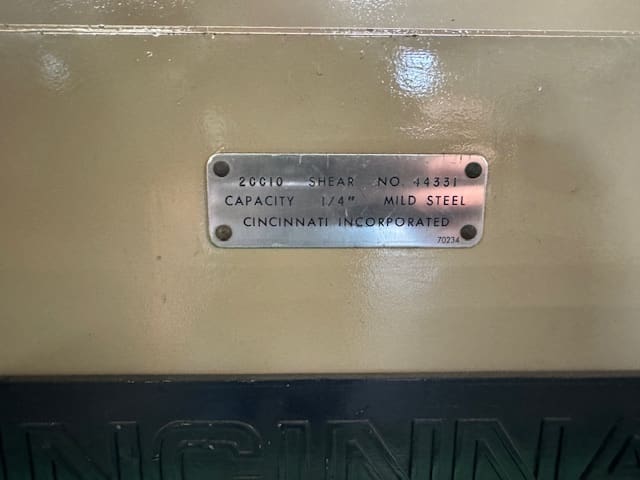 Used Cincinnati 20010 Shear for Sale. This pre-owned Cincinnati shear is located in California and available to be seen under power for an inspection. If you have any questions regarding this Cincinnati Shear, please feel free to contact us. You may Activate Pricing to view the price of this CNC Machine, or request a quote by clicking on the Inquire Now button.