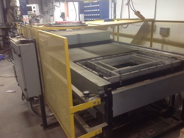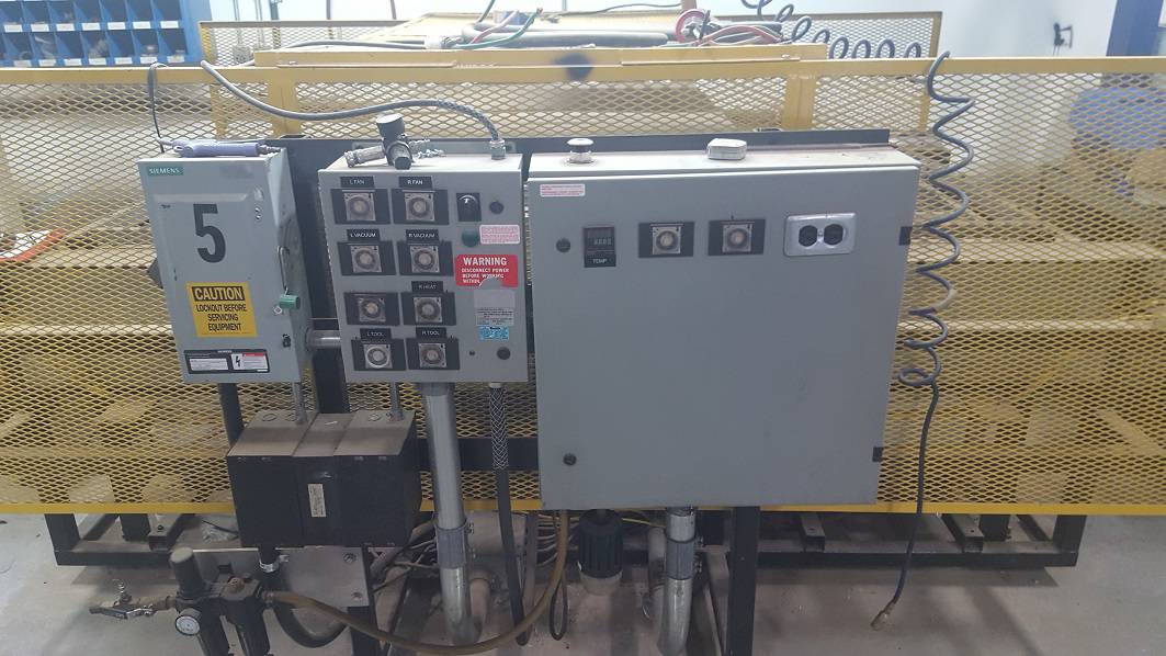 Used Custom Manufacturer Double Ender Vacuum Former Thermo Former for Sale.  This pre-owned Custom Manufacturer thermoformer machine is located in Canada and available to be seen under power for an inspection.  If you have any questions regarding this Custom Manufacturer Former, please feel free to contact us.  You may Activate Pricing to view the price of this Plastic Forming Machine, or request a quote by clicking on the Inquire Now button.