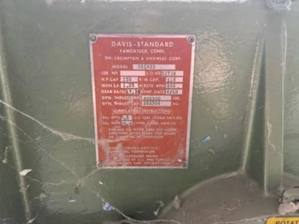 Used Davis Standard 35IN35 Extruder for Sale. This pre-owned Davis Standard plastic extruder is located in The United States and available to be seen under power for an inspection. If you have any questions regarding this Davis Standard Extruder, please feel free to contact us. You may Activate Pricing to view the price of this Plastic Extrusion Machine, or request a quote by clicking on the Inquire Now button.