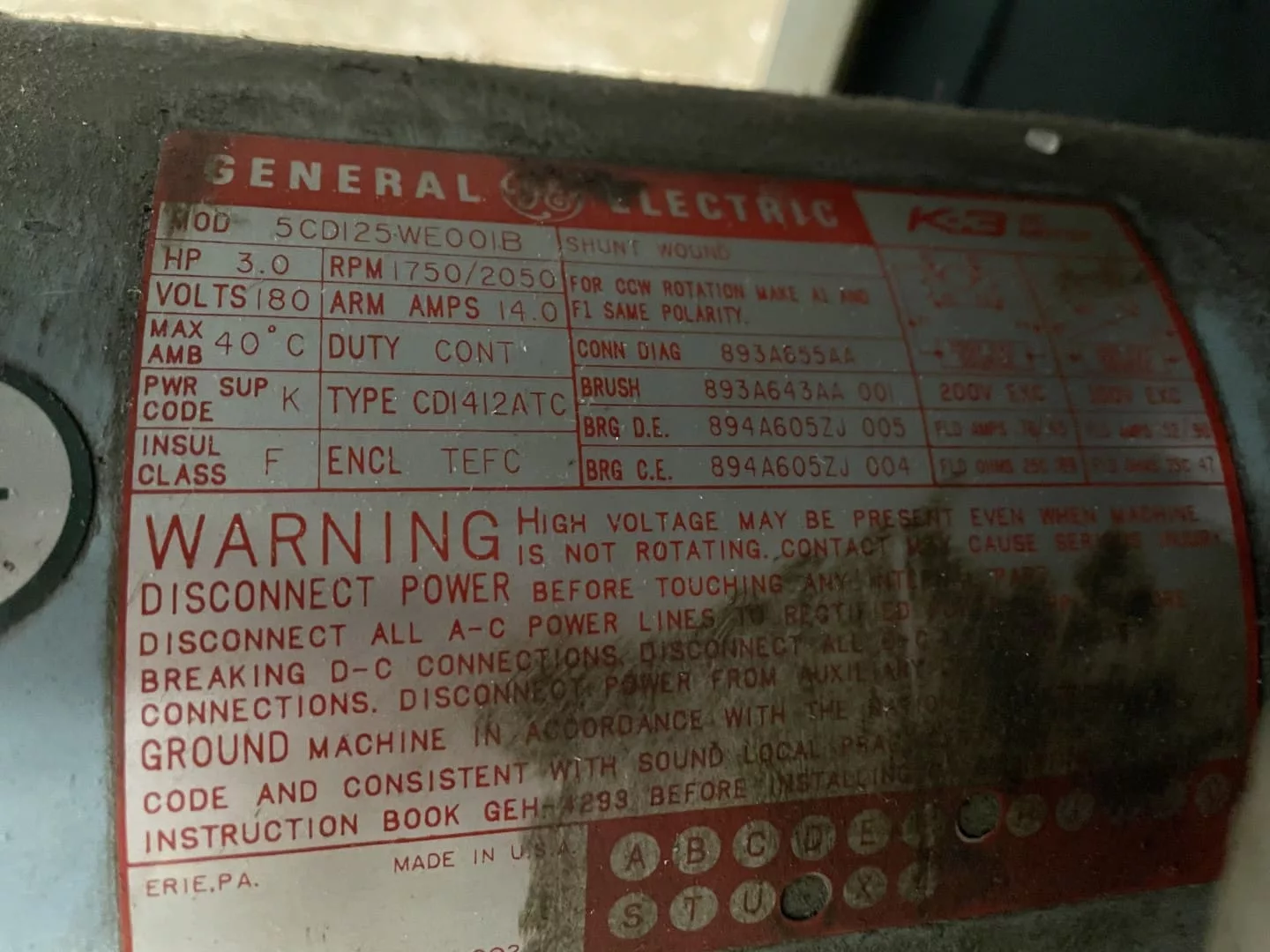 3 hp GE DC Motor W/Control Techniques Drive |