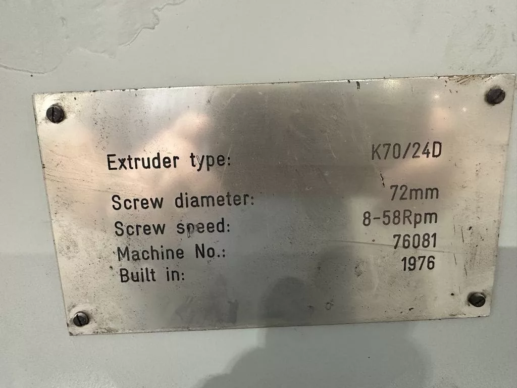 Used Kuhne K70/24D Extruder for Sale. This pre-owned Kuhne plastic extruder is located in The United States and available to be seen under power for an inspection. If you have any questions regarding this Kuhne Extruder, please feel free to contact us. You may Activate Pricing to view the price of this Plastic Extrusion Machine, or request a quote by clicking on the Inquire Now button.