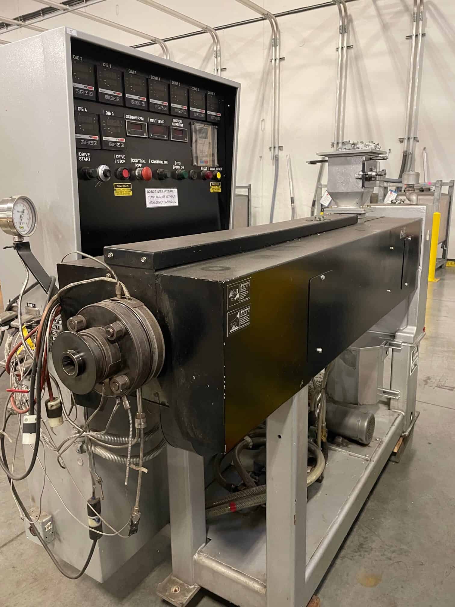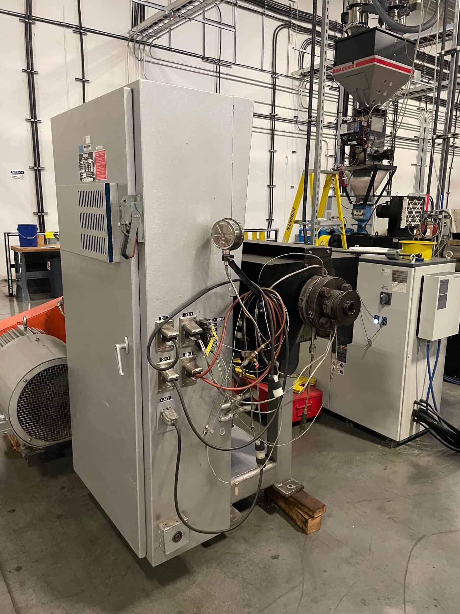 Used NRM Single Screw Extruder for Sale. This pre-owned NRM plastic extruder is located in The United States and available to be seen under power for an inspection. If you have any questions regarding this NRM Single Screw Extruder, please feel free to contact us. You may Activate Pricing to view the price of this Plastic Extrusion Machine, or request a quote by clicking on the Inquire Now button.